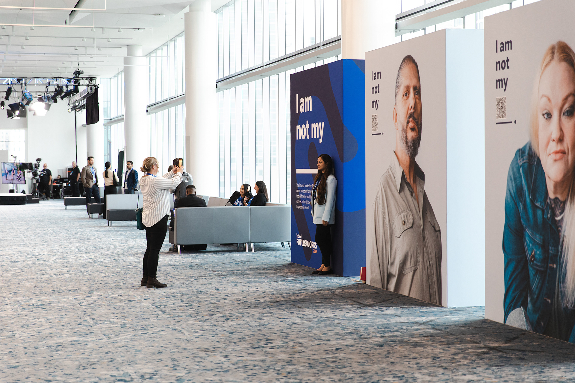 Our team was hired to design a new brand identity and event experience for the 2022 Indeed Futureworks event held at the Javits Center in New York City. Bringing together over 1,000 global talent acquisition leaders for an in-person experience—and connecting with more than 50,000 virtual attendees worldwide. The event featured a compelling blend of industry thought leaders, innovators, and high-profile speakers, creating a one-of-a-kind hybrid experience that bridged insight, inspiration, and impact.