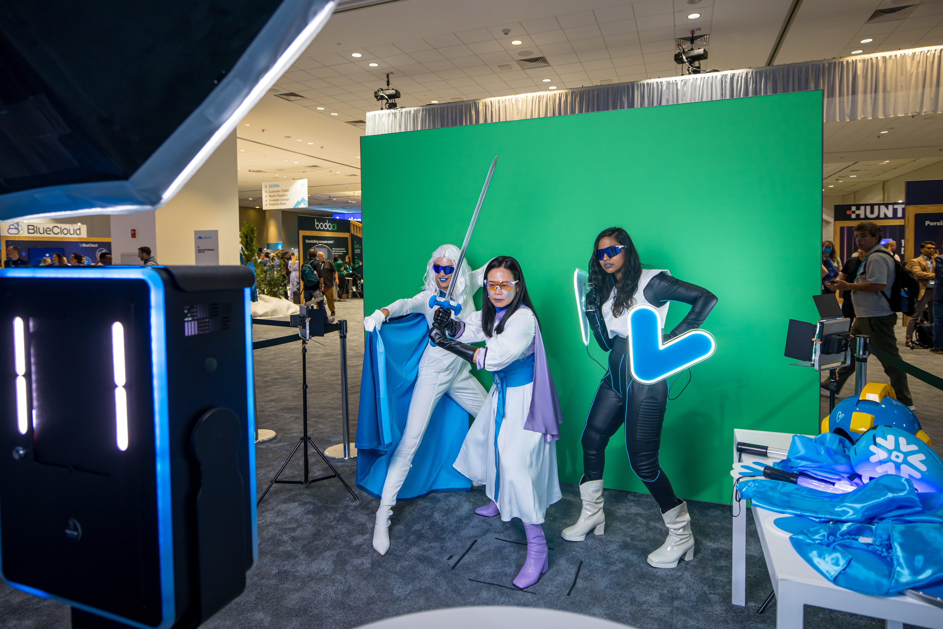 Attendees scanned a QR code while waiting in line, allowing them to explore and select from animated AR backdrops featuring Snowflake’s five Data Heroes, each representing a different data skillset.
