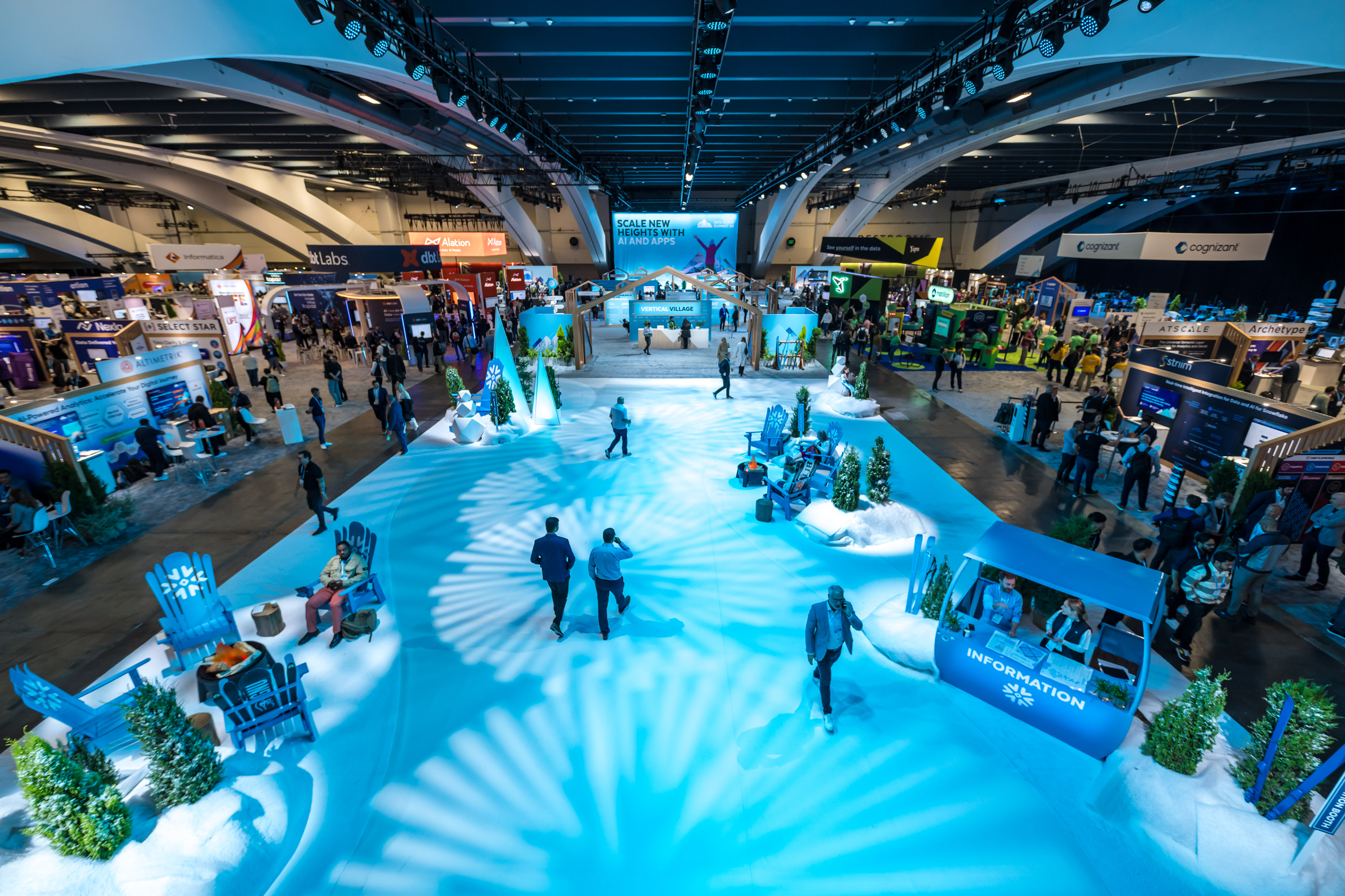 At the core of our creative strategy was a thematic journey: “Paint the Town Blue”, positioning attendees as explorers and achievers in a data-powered landscape. From the moment guests arrived, the environment transported them into an interconnected world of AI-powered insight and narrative-driven discovery.